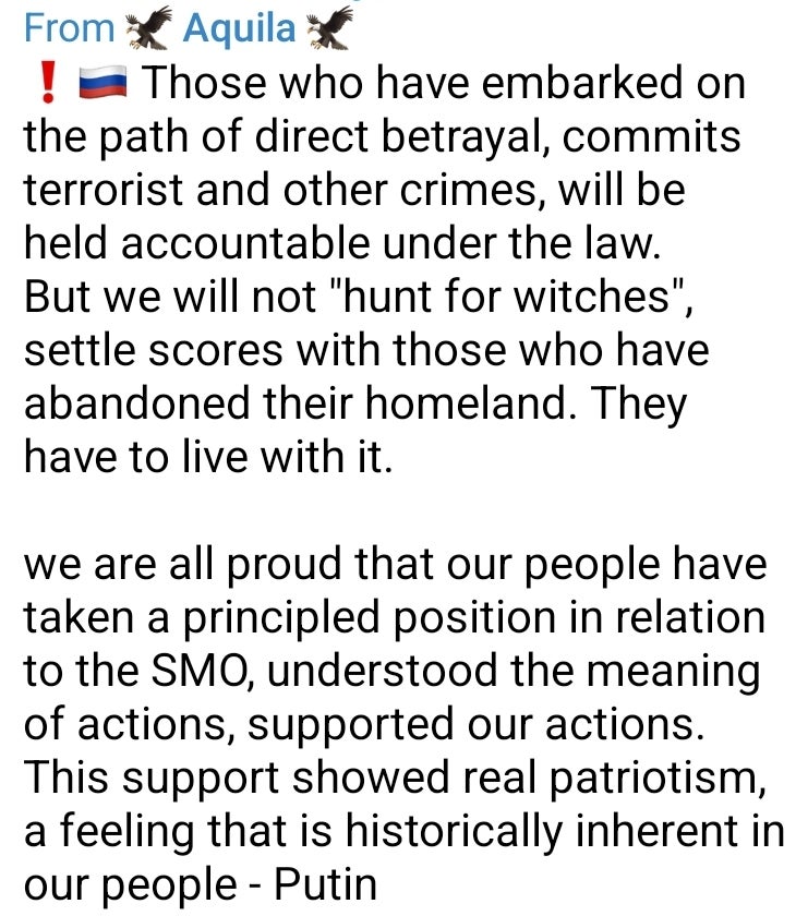 私たちは、国民がSMO(戦争)に関して原則的な立場をとり、行動の意味を理解し、私たちの行動を支持してくれたことを誇りに思っています。