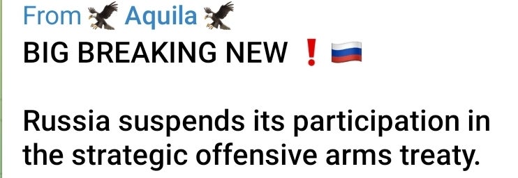 G.  速報-ロシア、核軍縮条約「ニュー・スタート」への参加を一時停止。