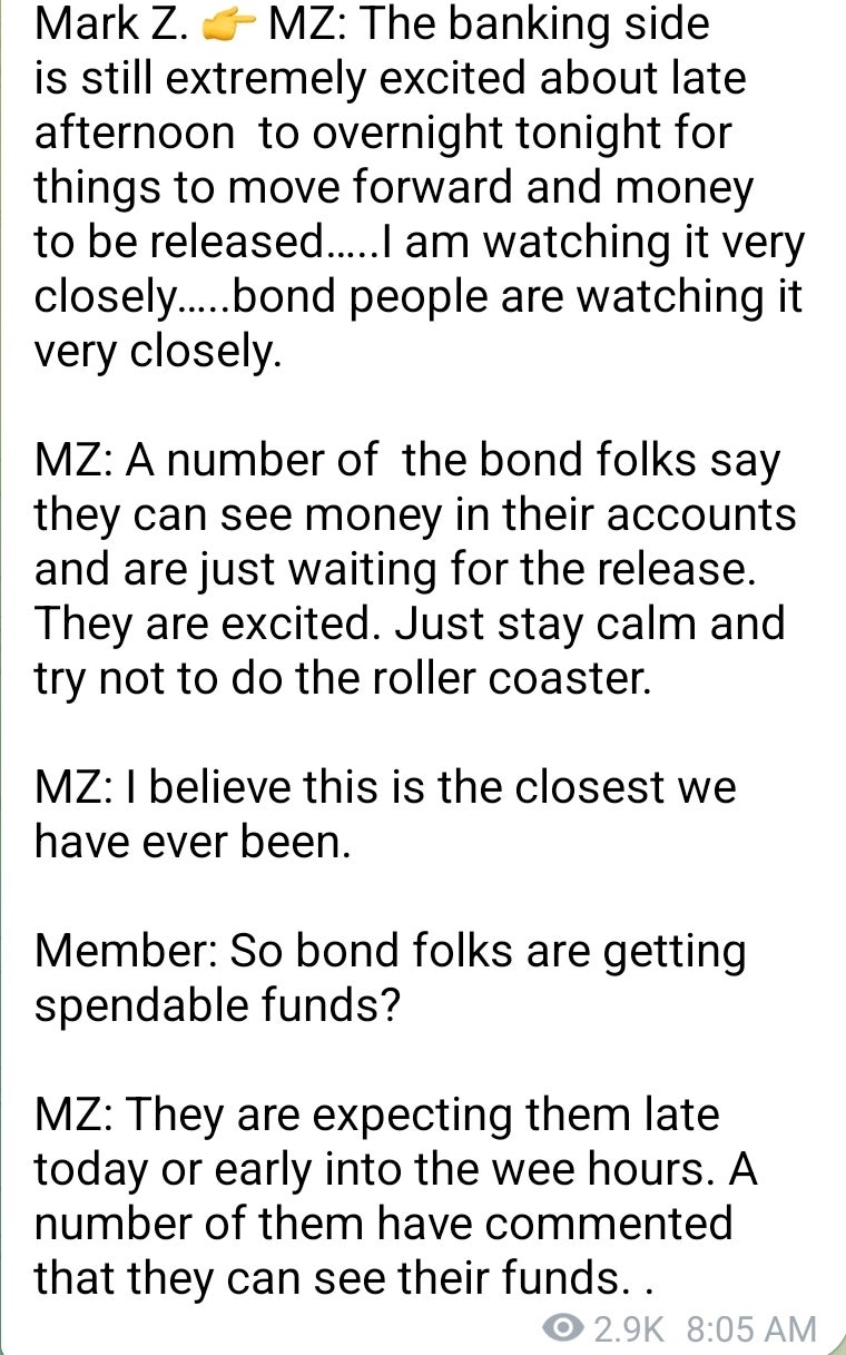MZ:多くの債券の人々は、口座でお金を見ることができ、解放を待っているだけだと言います。 彼らは興奮しています。