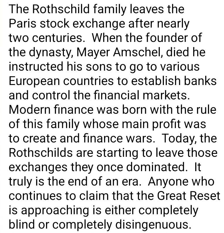 今日、ロスチャイルド家は、かつて支配していたこれらの取引所から去り始めています。