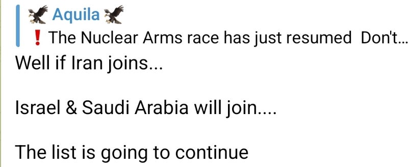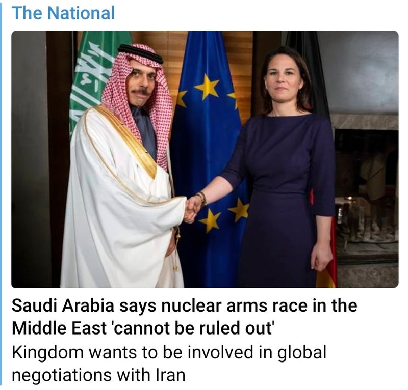 B. サウジアラビアは、中東での核軍拡競争は排除できないとしています。
