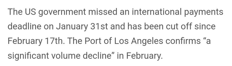 A. アメリカ政府は1月31日に国際的な支払い期限を逃し、2月17日から支払いを停止しています。