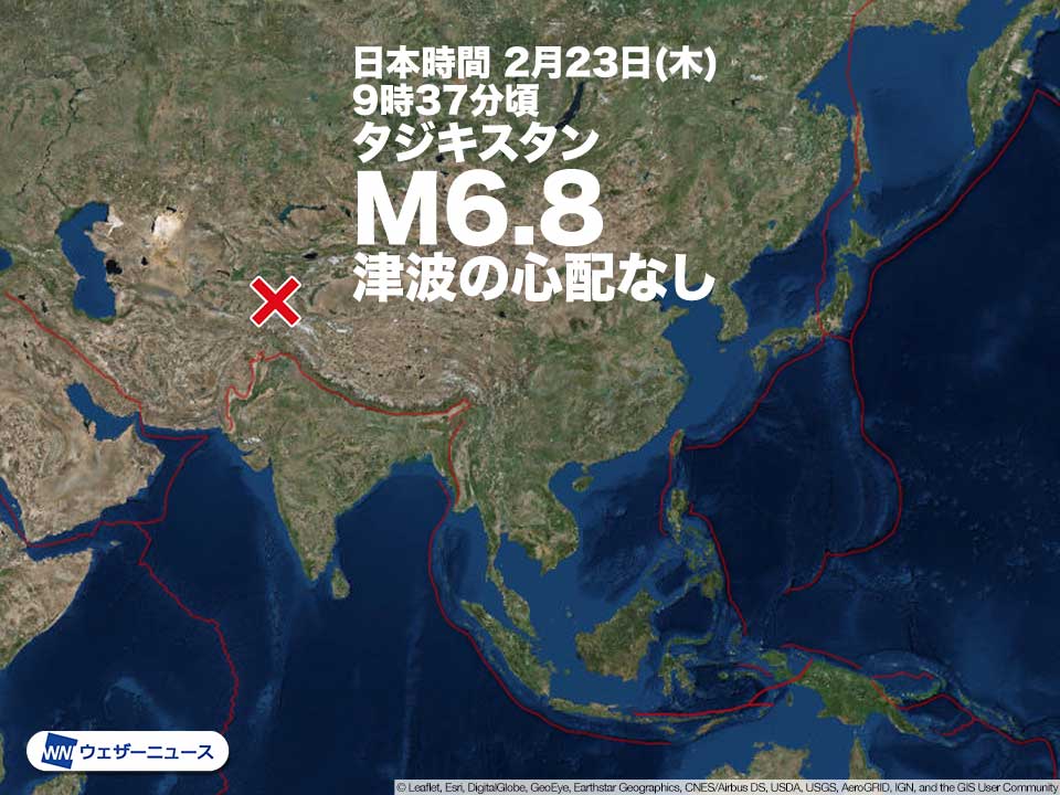 2 月 23 日、タジキスタン東部:マグニチュード 6.8 の地震が、中央アジアの内陸国であるタジキスタン東部を襲った。