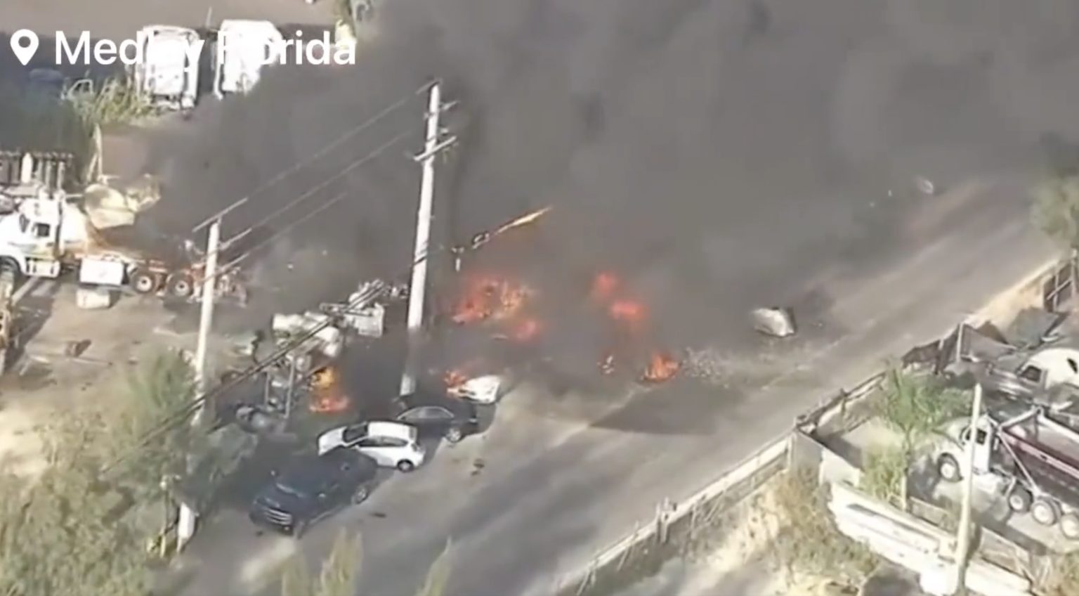 近くの企業やテレビのニュースヘリコプターから得られた映像によると、フロリダ州メドレーで発生した爆発は大きな火球を空に送り、複数のトラックや他の車両を炎上させたとAPは報告した。