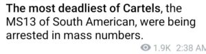 E. 最も致命的なカルテルである南米のMS13は、大量に逮捕されていました。