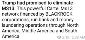 D. トランプ大統領はMS13の排除を約束していました。この強力なカルテルMS13ネットワークは、ブラックロック社から資金提供を受け、北米、中米、南米を通じて銀行とマネーロンダリング業務を運営しています。