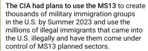 G. CIAは2023年夏までにMS13を利用して、米国内に数千の軍用移民収容所を作り、米国に不法入国した数百万人の不法移民を利用して、MS13が計画した部門の管理下に置く計画を持っていました。