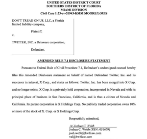 (裁判所への提出書類により、Twitter, Inc. は「もはや存在しない」ことが明らかになりました。X社に吸収合併されました。)