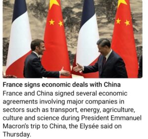 フランスが中国と経済協定を締結。フランスと中国は、エマニュエル・マクロン大統領の中国訪問中に、交通、エネルギー、農業、文化、科学などの分野の大企業が関わる複数の経済協定に署名したと、エリゼが木曜日に発表しました。