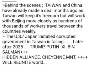 *解説:台湾はすでに中国と秘密裏に交渉しており、中国による台湾への軍事作戦は見せかけであるようです。