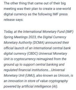 C. もう一つ、彼らの大きな会議で出てきたのは、以下のIMFプレスリリースにあるように、世界統一のデジタル通貨を作るという計画でした: