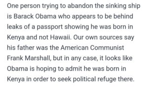 我々の情報では、彼の父親はアメリカの共産主義者フランク・マーシャルだというが、いずれにせよ、オバマはケニアで生まれたことを認め、そこに政治的避難を求めることを望んでいるように見えます。