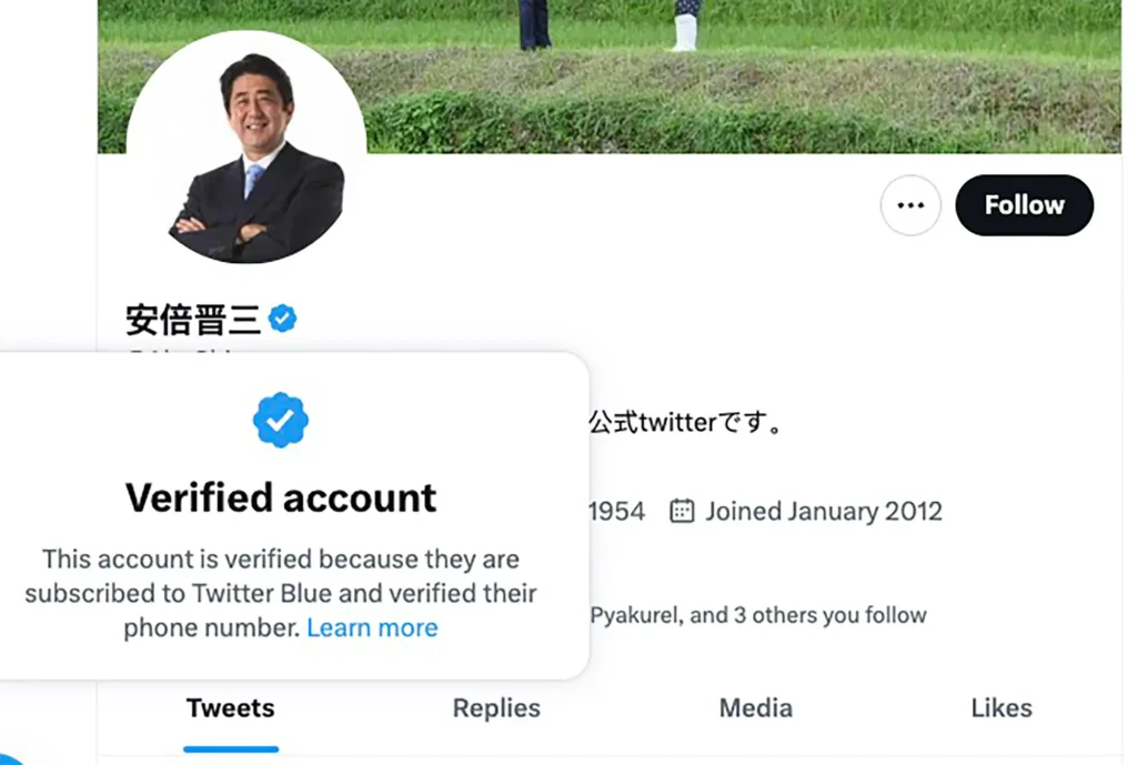 昨年暗殺された安倍晋三元首相は、青いチェックマークを元に戻しました。