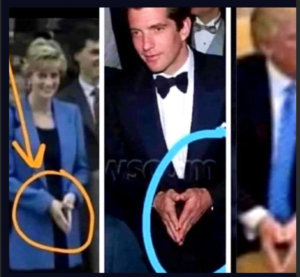 ダイアナ妃 ()、ジョン F. ケネディ Jr. (中央)、ドナルド トランプ大統領 () は皆、古代の「心とすべてを見る目」の手信号を頻繁に出しました。