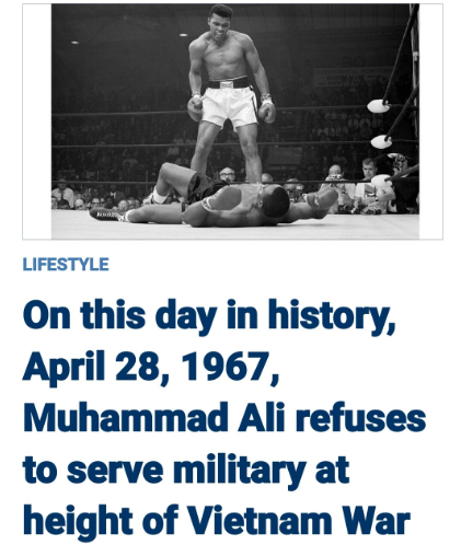 「この戦争が何のためにあるのかわからないそして、1967 年 4 月 28 日、ちょうど56 年前の今日、彼がアメリカ陸軍に入隊して南ベトナムで戦うことを拒否したことは有名であり、それによって彼はヘビー級のタイトルを失いました。