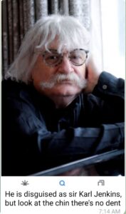 カール・ジェンキンス卿に変装しているが、あごにへこみがないです。