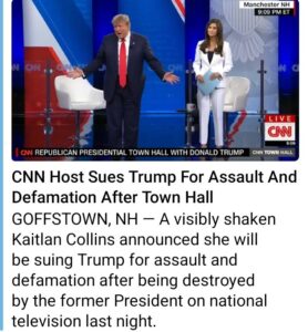 A. CNNの司会者がタウンホール後のトランプ氏を暴行と名誉棄損で提訴。