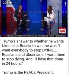 ロシア人とウクライナ人。死ぬのをやめてほしい。そして、それを24時間以内に終わらせる。”