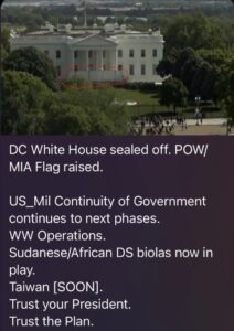 A.  ホワイトハウスが封鎖された。捕虜・行方不明者の旗を掲げた。