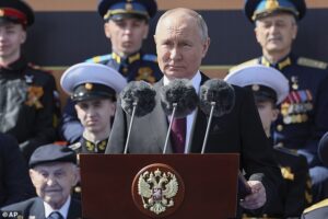 南アフリカ大統領によると、ウラジーミル・プーチン大統領(5月9日撮影)とヴォロディミル・ゼレンスキー大統領は、ウクライナ戦争終結に向けた可能性のある計画について話し合うため、アフリカ諸国元首代表団と個別に会談することに同意したと発表した。