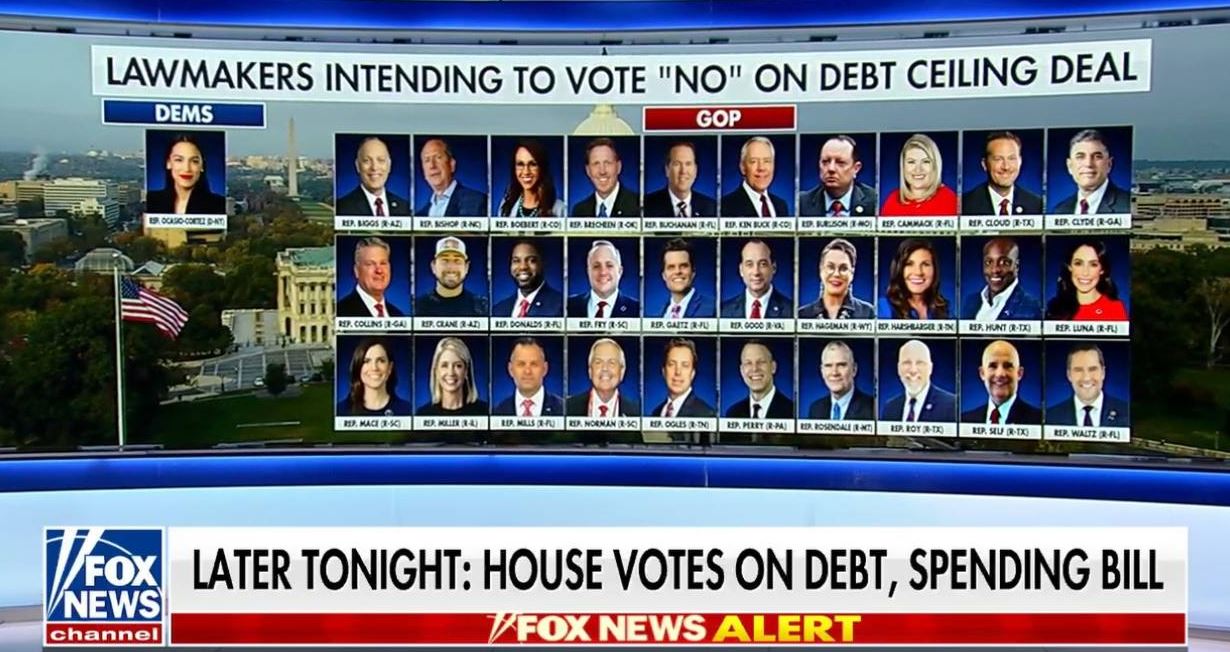 これまでのところ、共和党議員35人がバイデン・マッカーシー詐欺債務法案に「反対」票を投じている。