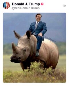 本日、トランプ大統領はSNSでデサンティスを皮肉った画像を投稿しています。