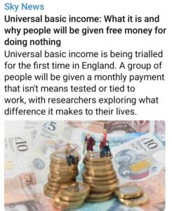 嬉しい情報は、英国でUBIとして1600ポンド(28万円)を毎月一部で支給して実験しているようです。