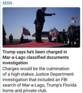 B. トランプ氏、マーラーゴ機密文書捜査で起訴されたと発言。