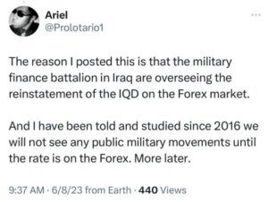 イラクディナールレート設定とトランプ起訴は関連したいた!軍の出動の合図か?