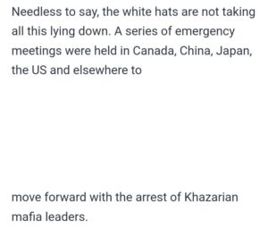 ホワイトハットは反撃として、ハザール(ディープステート)の逮捕を進めるようです。