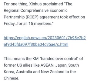 これは、カザリアンマフィアがASEAN諸国、日本、韓国、オーストラリア、ニュージーランドといった旧アメリカの同盟国の支配権を中国に「譲った」ことを意味します。