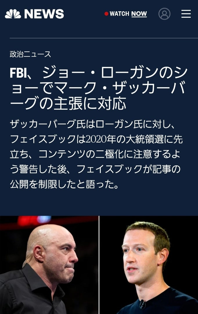 8月27日に投稿さた、NBCニュースの記事で、2020年選挙の末期に、司法省(FBI)はフェイスブックにハンター・バイデンのパソコン情報の記事の検閲を要求した事を、創設者のマーク・ザッカーバーグが暴露したのです。